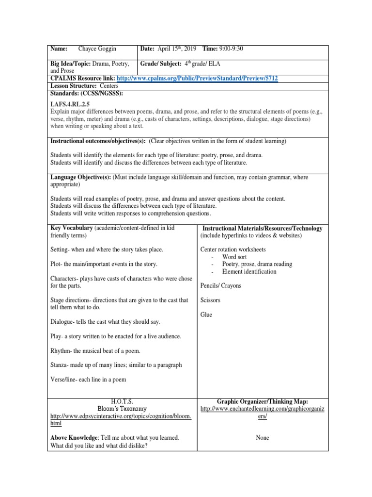 Share to edmodo share to twitter share other ways. Use a highlighter to help the students identify the many literary elements that are used in. Read and examine the examples of poetry, prose, and drama.